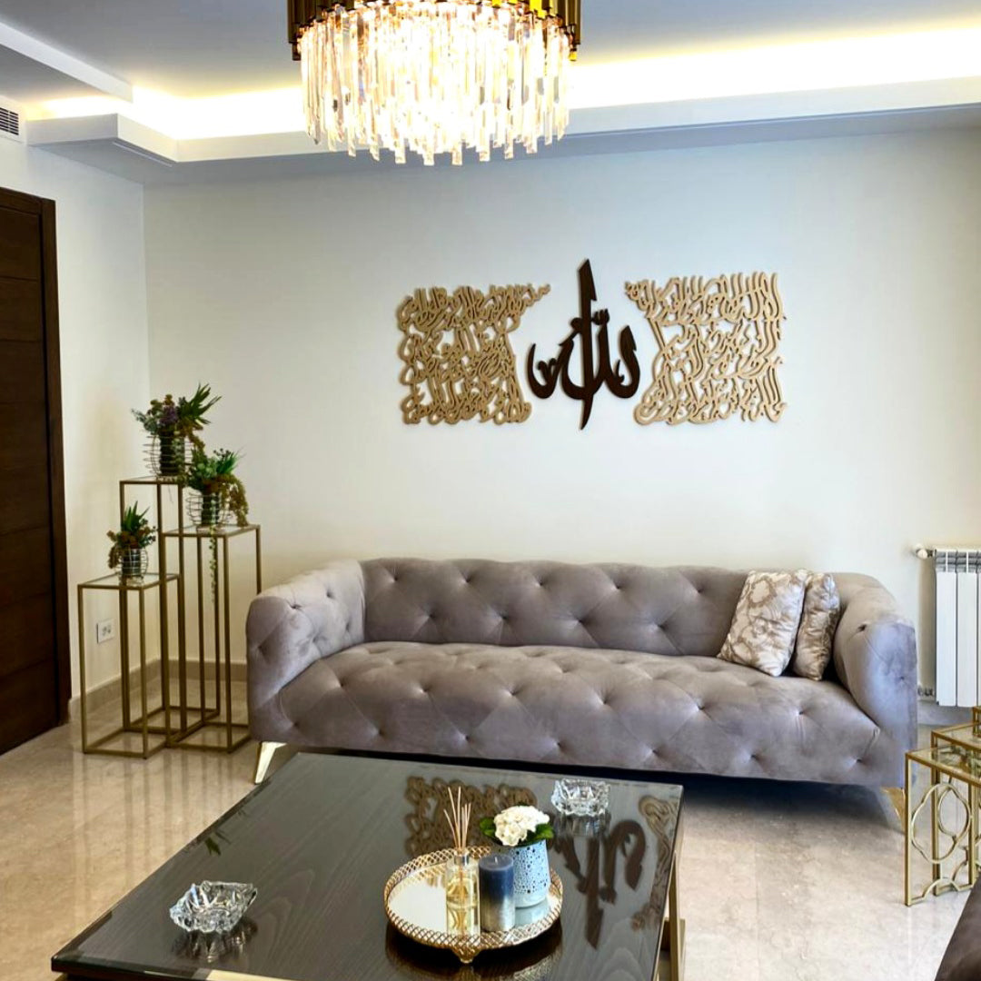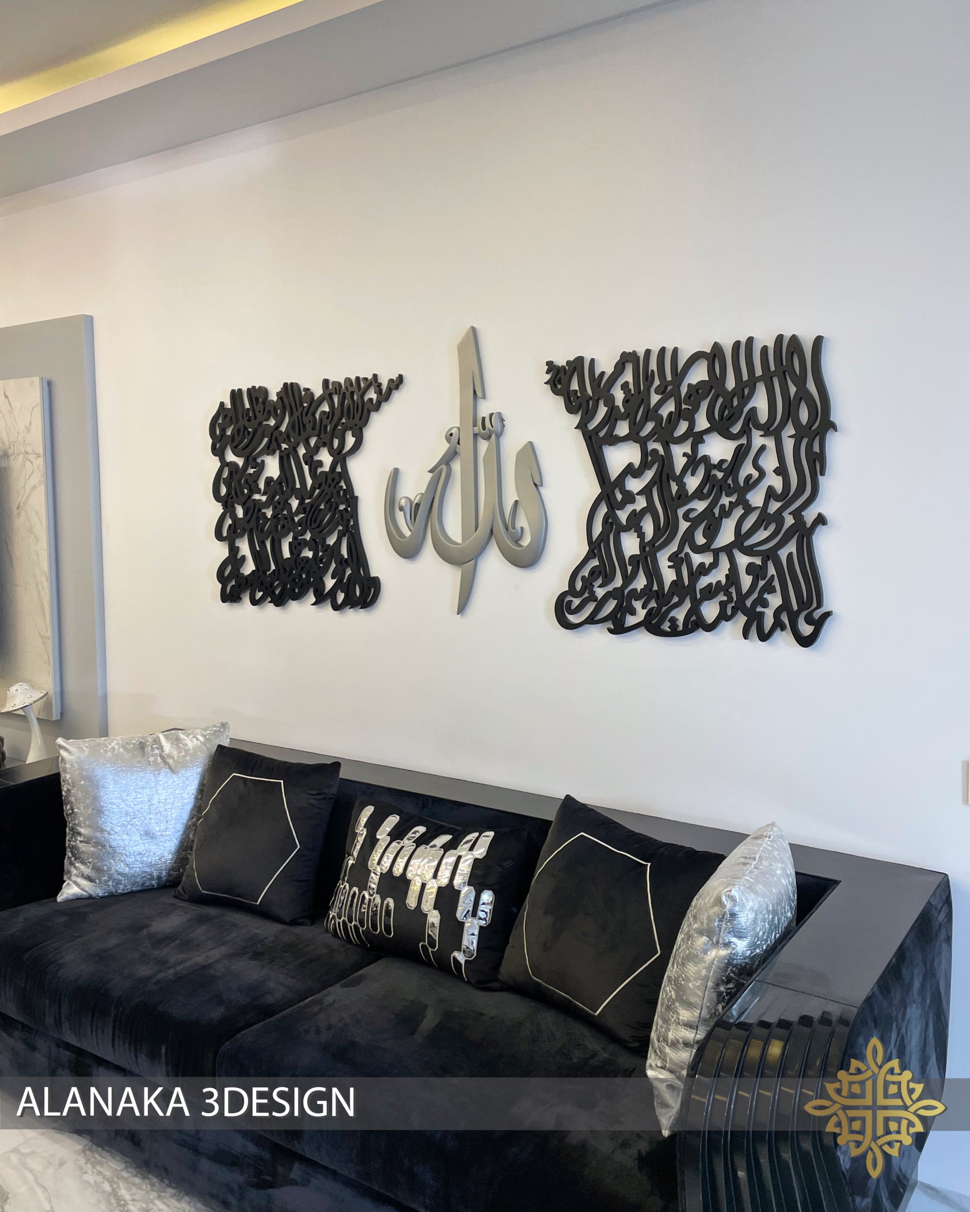 The artwork on the wall is done in calligraphic style and showcases the renowned verse from the Holy Quran, Ayatul Kursi.
